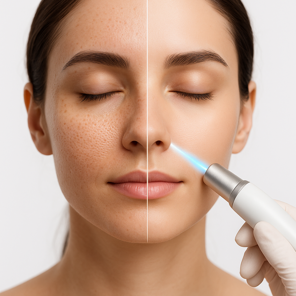 Когда рельеф кожи уже выраженно нарушен, и поры растянуты из-за возраста или постакне, лучше всего работают лазерные технологии.